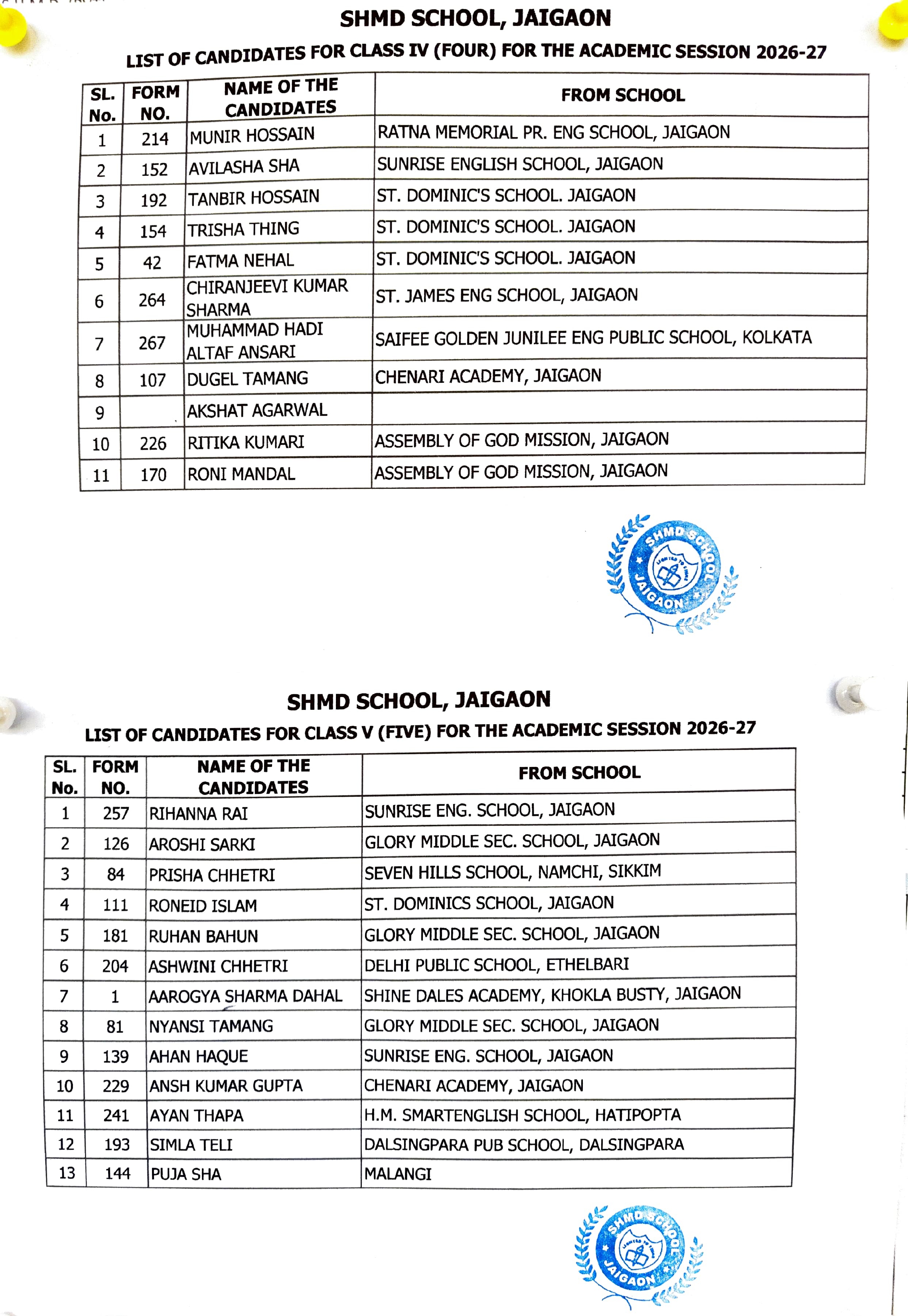 Admission Test Results 2026